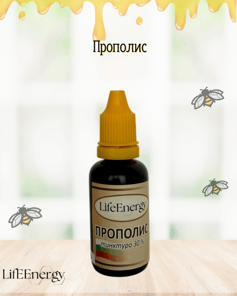- Тинктура от прополис (30%) – по няколко капки, разтворени във вода или мляко.
